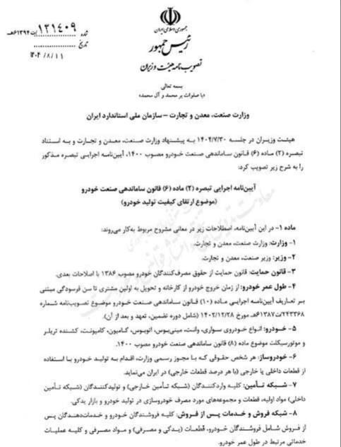 دوشنبه - ۱۴۰۴/۰۸/۱۲ - ۱۲:۲۷دسته بندی اقتصادی آییننامه ارتقای کیفیت خودروهای داخلی ابلاغ شد 🔹آییننامه ارتقای کیفیت تولید خودرو با هدف ارتقاء کیفیت، در محصول نهایی و فرآیندهای ساختار زنجیره تولید خودروهای داخلی ابلاغ شد. @navasanchannel