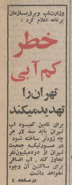 هشدار «جیره‌بندی آب تهران» در سال 1350
