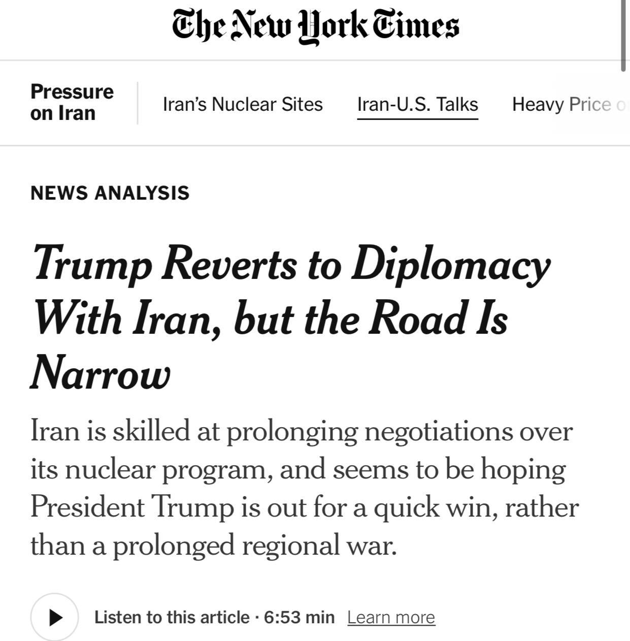 یکشنبه - ۱۴۰۴/۱۱/۱۹ - ۱۱:۲۷دسته بندی سیاسی نیویورک تایمز : ایران متخصص طولانی کردن مذاکرات بر سر برنامه هستهای خود است 🔹به نظر میرسد #ایران امیدوار است که رئیس جمهور ترامپ به دنبال جنگ طولانی نباشد @navasanchannel