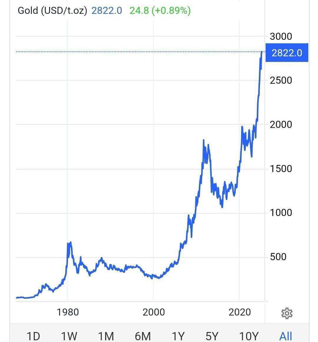 🔹 قیمت جهانی طلا باز هم رکورد تاریخی زد، هر انس طلا امروز ۳۷۷۴ دلار شد و این روند صعودی همچنان ادامه دارد